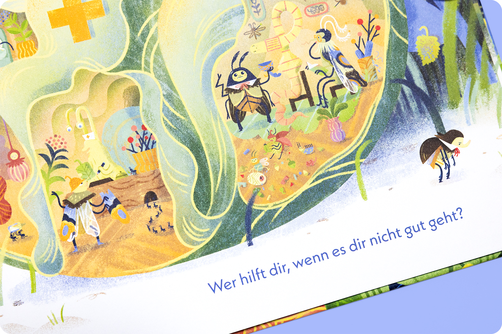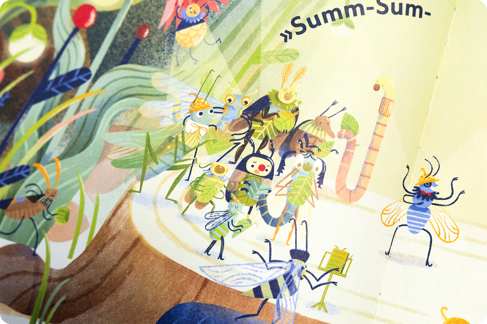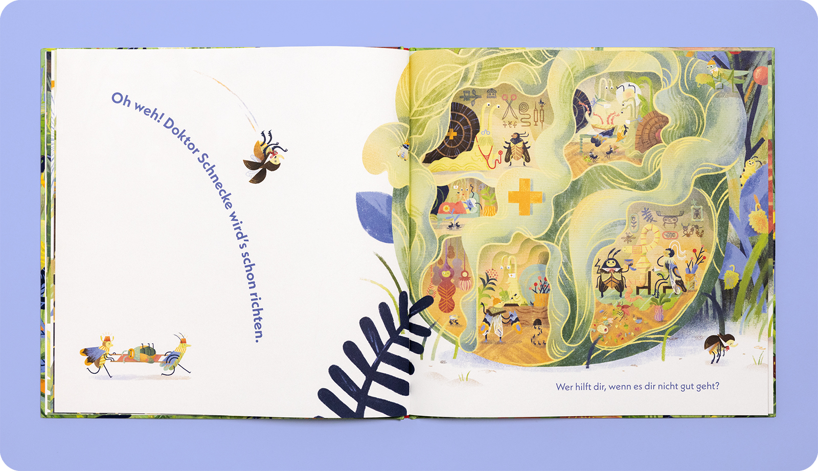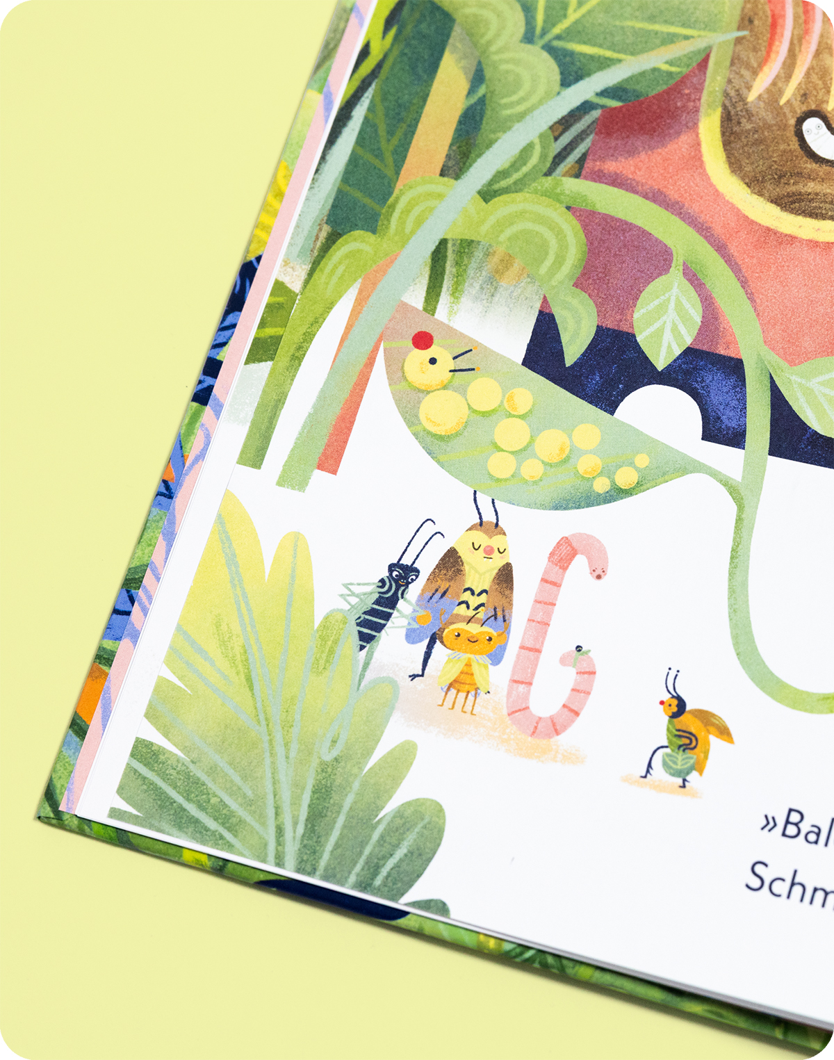How do insects actually live? In »Krabbelstadt« (Crawling City), the garden metropolis, a wide variety of crawling beetles live together: whether it's Chantal the cockroach, Silas the butterfly, Hugo the bumblebee, or Lisa the dragonfly, they all explore nature together and experience adventures both big and small. Each double page explores a new corner of the garden city, from the compost heap to the meadow, from the insect kiosk to the large rhubarb concert hall. Follow Norbert the Rhinoceros, who learns to fly with the help of his friends, and count the bugs and beetles on his way.