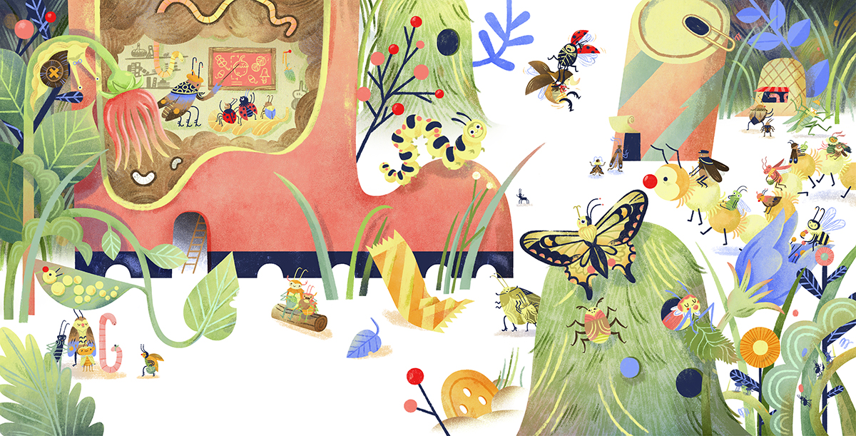 experience adventures both big and small. Each double page explores a new corner of the garden city, from the compost heap to the